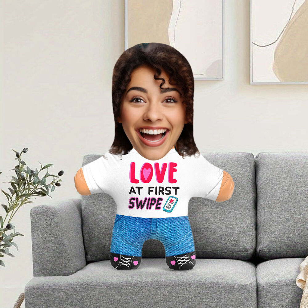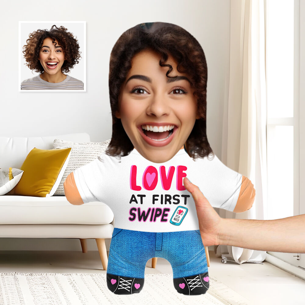 "Love At First Swipe" Custom Face Pillow Valentine's Day Gift for Couples
