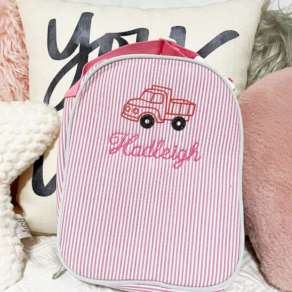 Custom Lunch Box Bag with Embroidered Truck and Name Insulated Cooler Back to School Gift for Kids