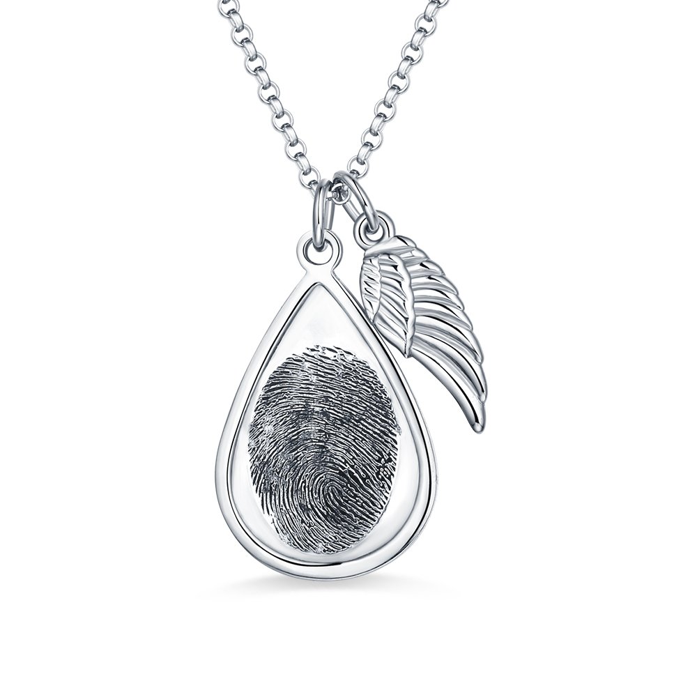 This Personalized Fingerprint Jewelry Engraved Letters Sterling Silver Necklace to reveal a personal touch,beautifully balanced and well crafted, rounded edge. You can carve words on the back of the necklace and choose the chain length. This will be your unique jewelry.