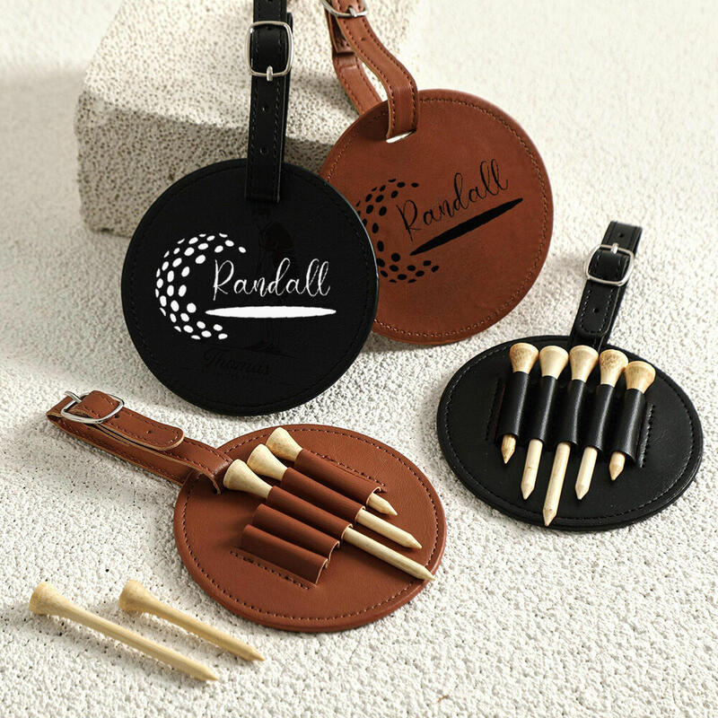 Personalized Golf Tee Holder Leather Golf Bag Tag Custom Golf Accessories for Him
