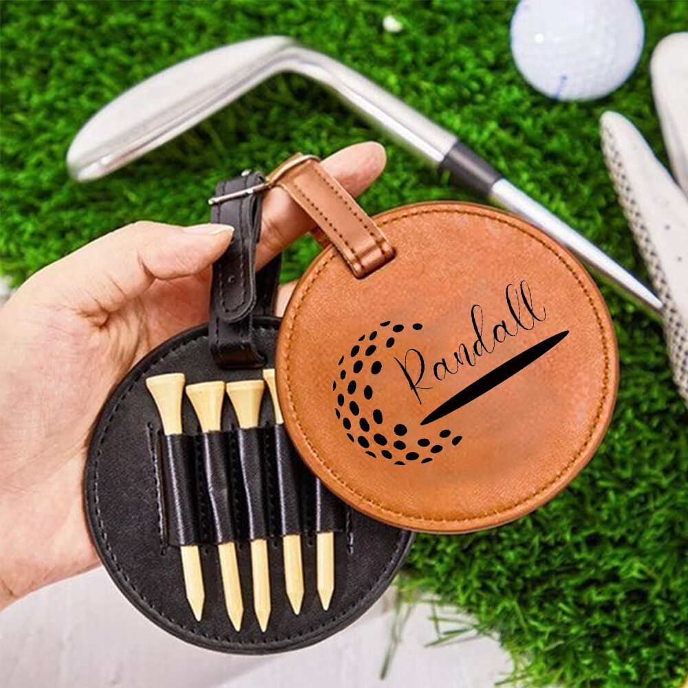 Personalized Golf Tee Holder Leather Golf Bag Tag Custom Golf Accessories for Him