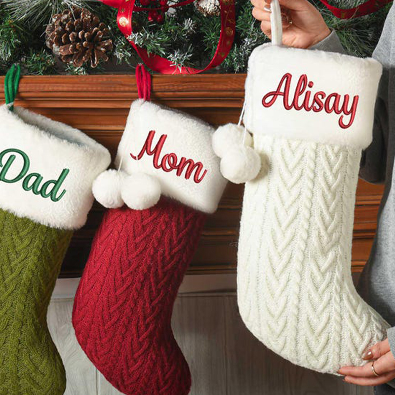 Personalized Knitted Christmas Socks Custom Embroidered Name Gifts For Family