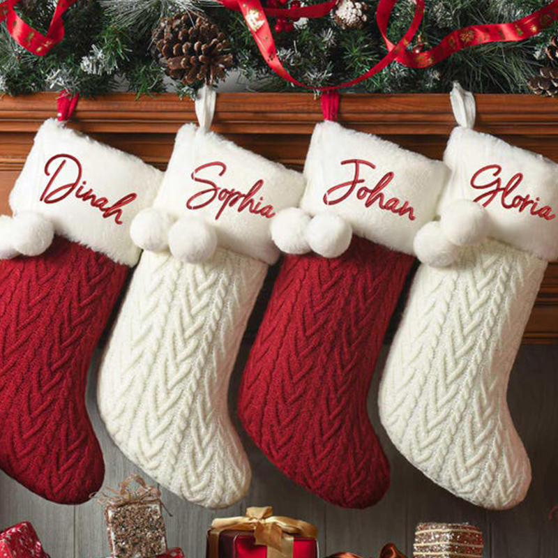 The most exciting thing is the personalized service we offer. You can customize the names of your family or friends on your socks to create a truly unique Christmas decoration. Imagine the warm and festive image of a row of Christmas stockings with the names of the whole family hanging over the fireplace! This is not only a decoration, but also a symbol of family reunion.
