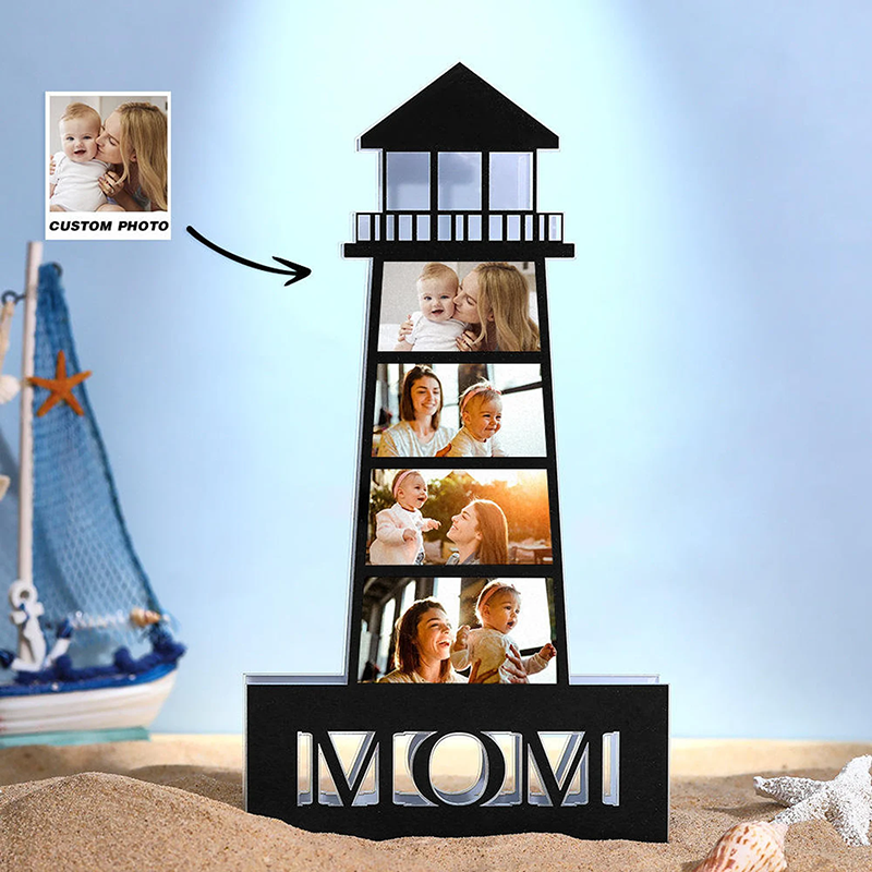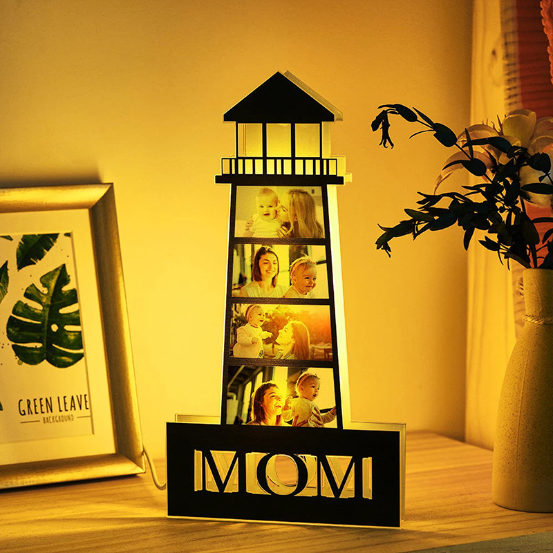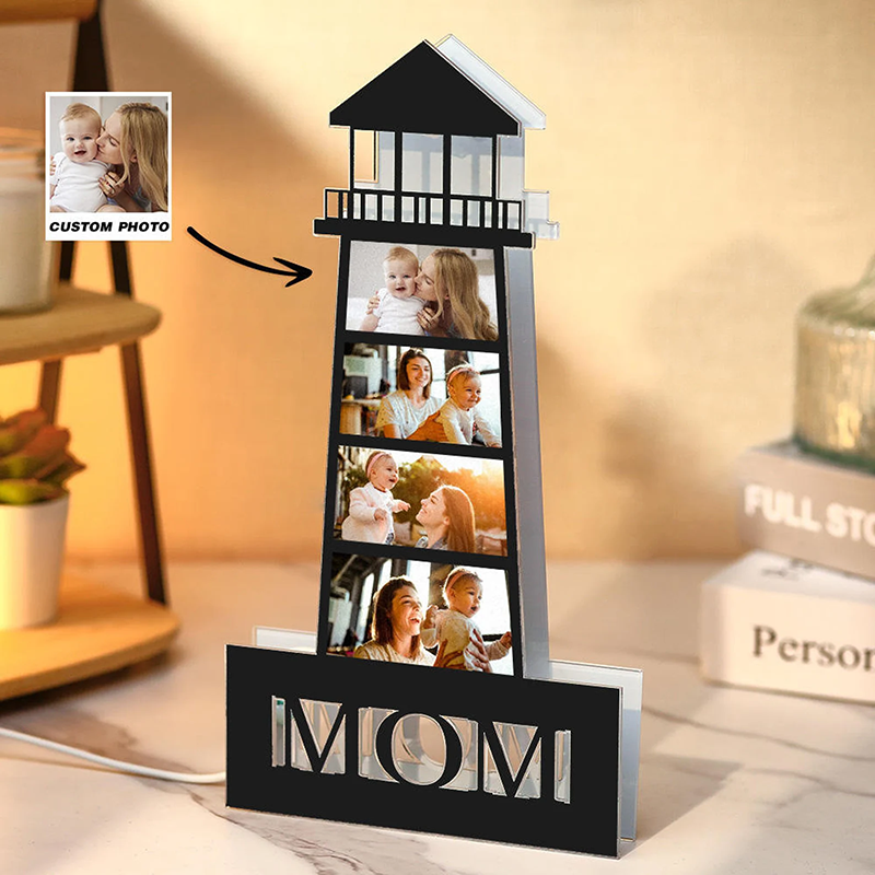 Personalized Picture Night Light Lighthouse Shaped Precious Gift for Mother