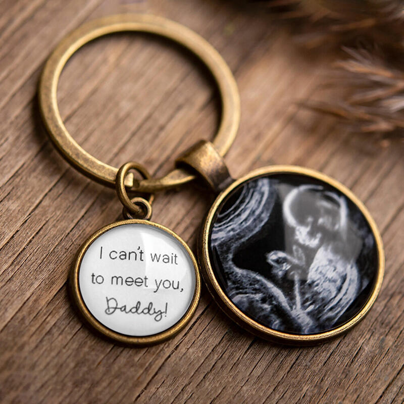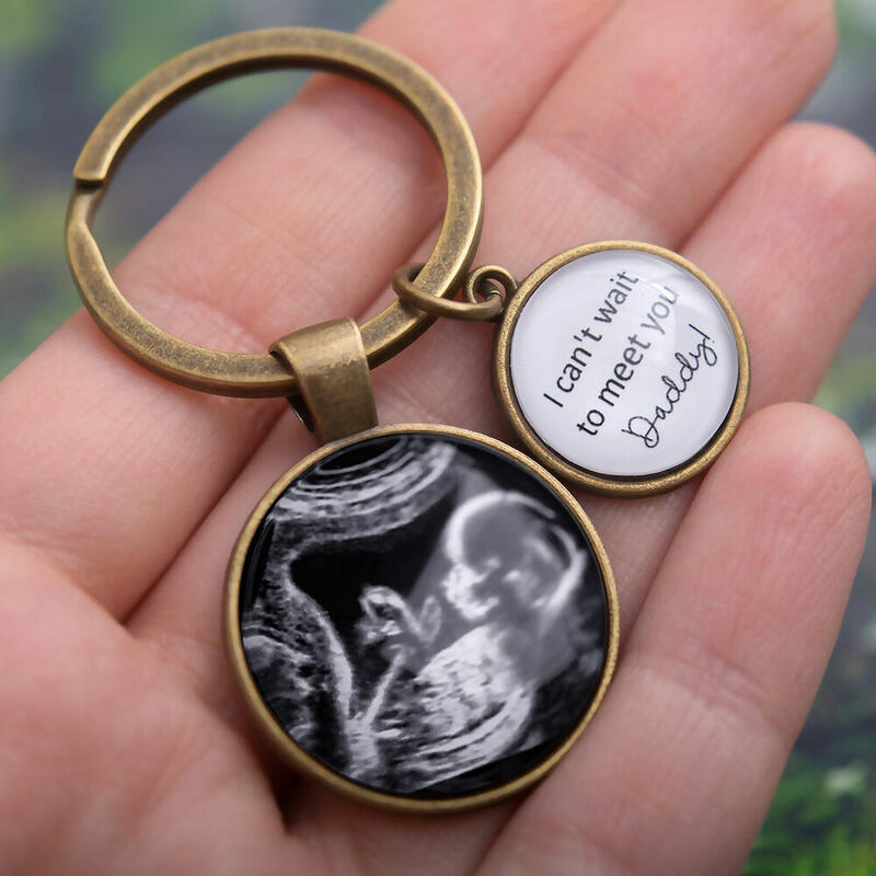 Personalized Ultrasound Photo Keychain Retro Style Pregnancy Gifts for New Dad Mom