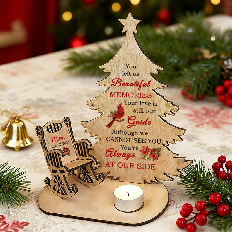 Mini Wooden Christmas Tree & Chairs Candle Holder – Customizable Holiday Centerpiece.