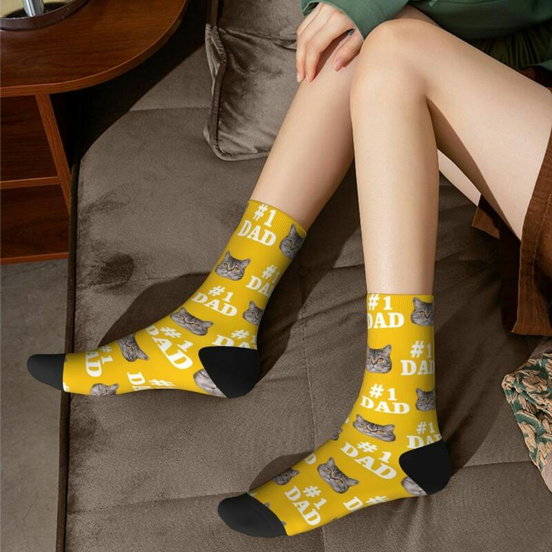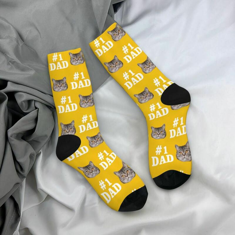 "#1 DAD" Customized Face Socks Father's Day Gift for Dad