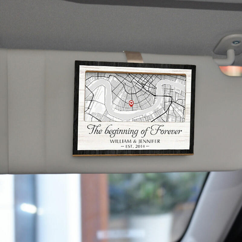 "Carry Your Heart with Me" Personalized Car Visor Clip Custom Location Map Gift for Husband