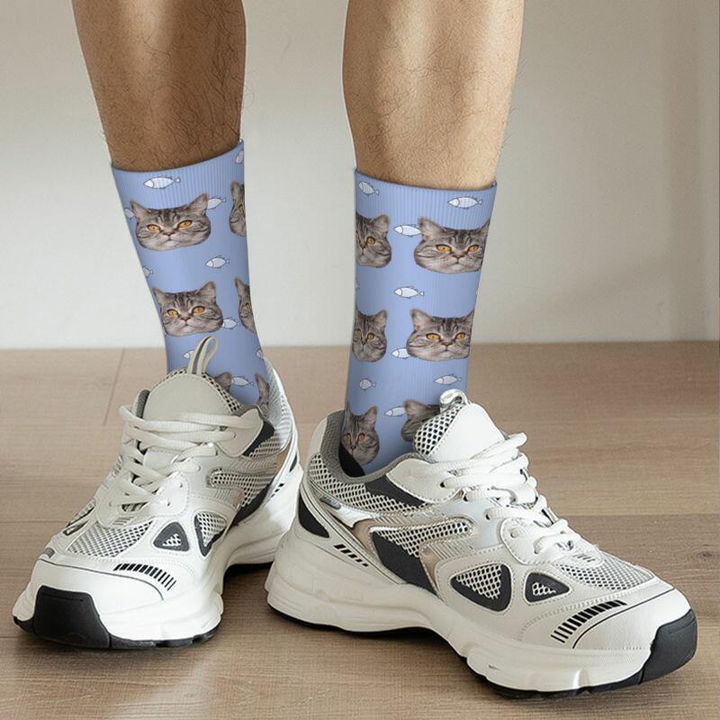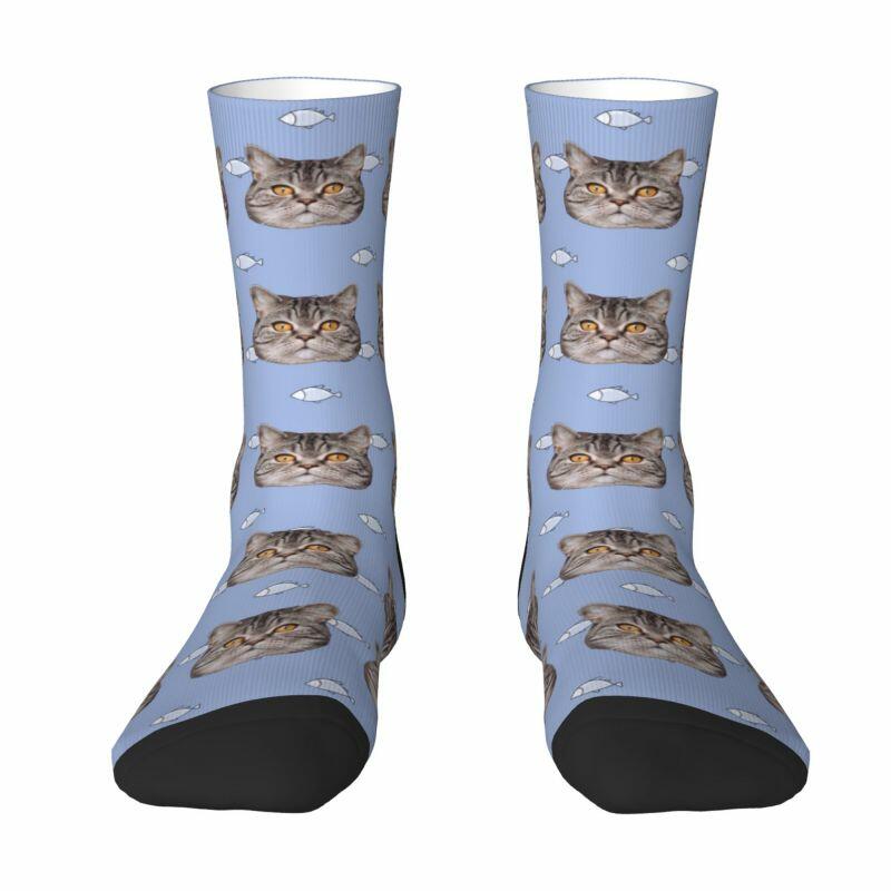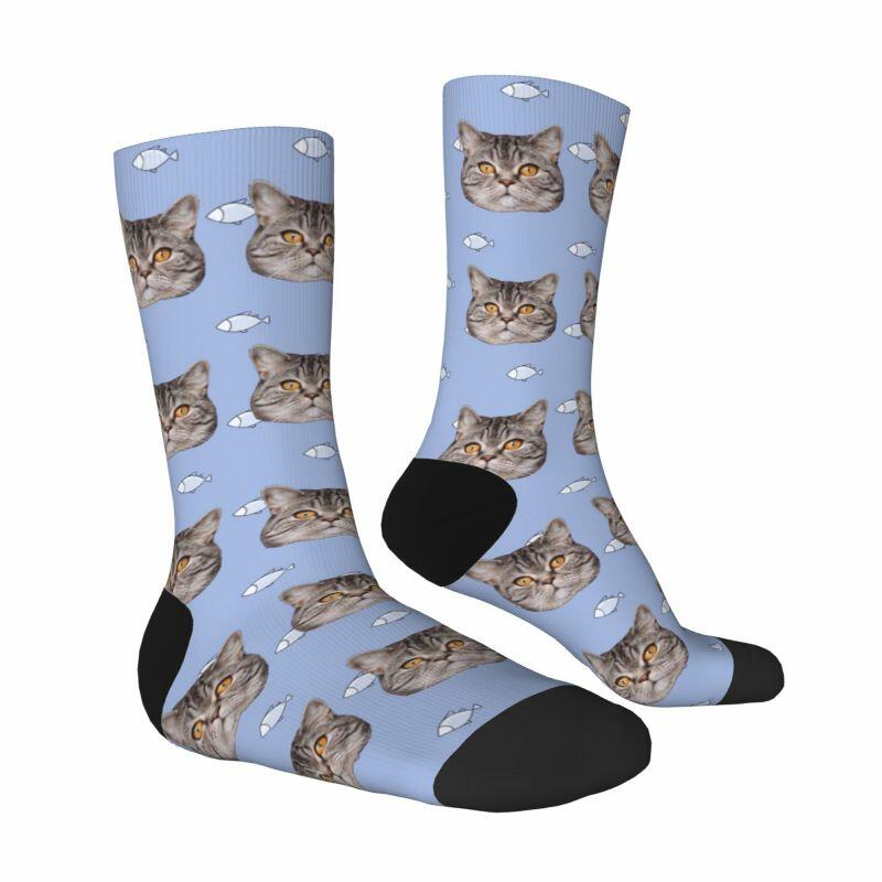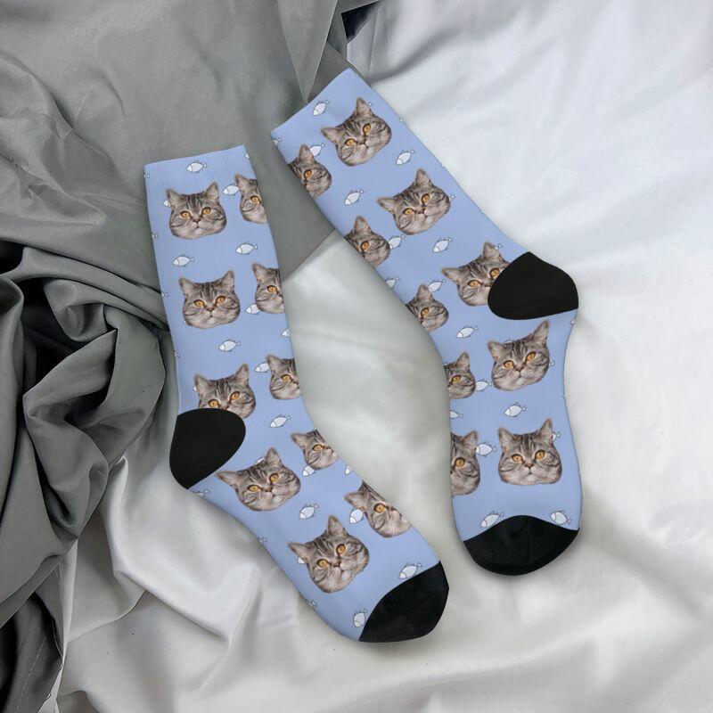 "Cat Eats Little Fish" Customized Face Socks Can Add Photos