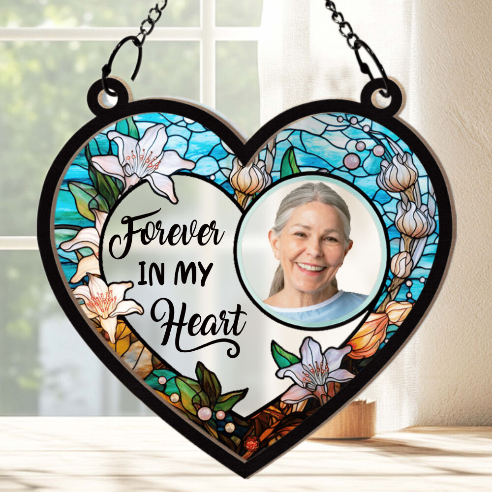 "Forever in Our Hearts" Custom Photo Window Hanging Suncatcher Ornament Memorial Gifts for Family