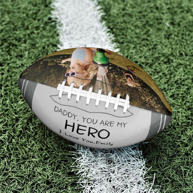 "Hero Dad" Personalized Football Can Be Added with Photos and Name as a Gift for Dad