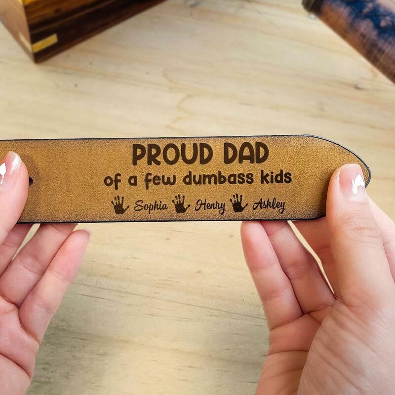 "Proud Dad of a Few Dumbass Kids" Personalized Engraved Leather Belt Father's Day Gift for Dad
