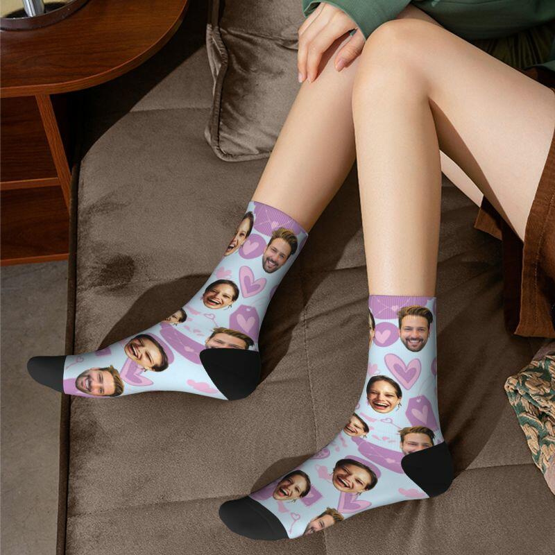 "Purple Love" Customized Couple Face Socks Valentine's Day Gift