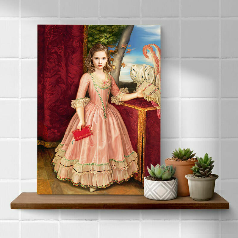 "The Pink Princess" Customized Head Photo Personalized Vintage Royal Portrait