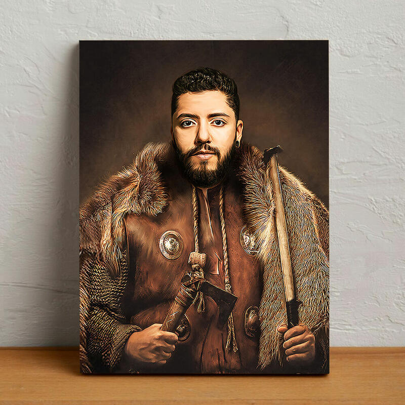 "The Viking" Custom Vintage Royal Portrait Based on Head Photo Great Gift for Him