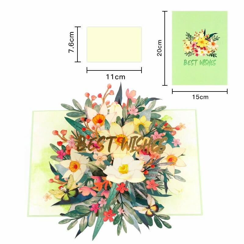3D Pop Up Card Best Wishes Blooming Flowers Perfect Gift for Mother's Day
