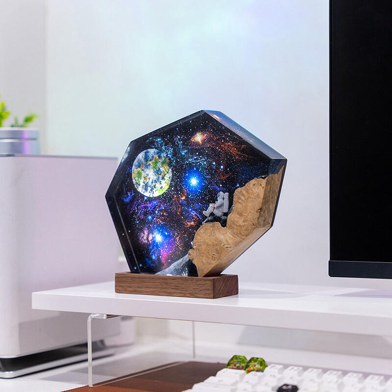 Astronaut And Interstellar Resin Wood Art Lamp Beautiful Gift for Best Friend