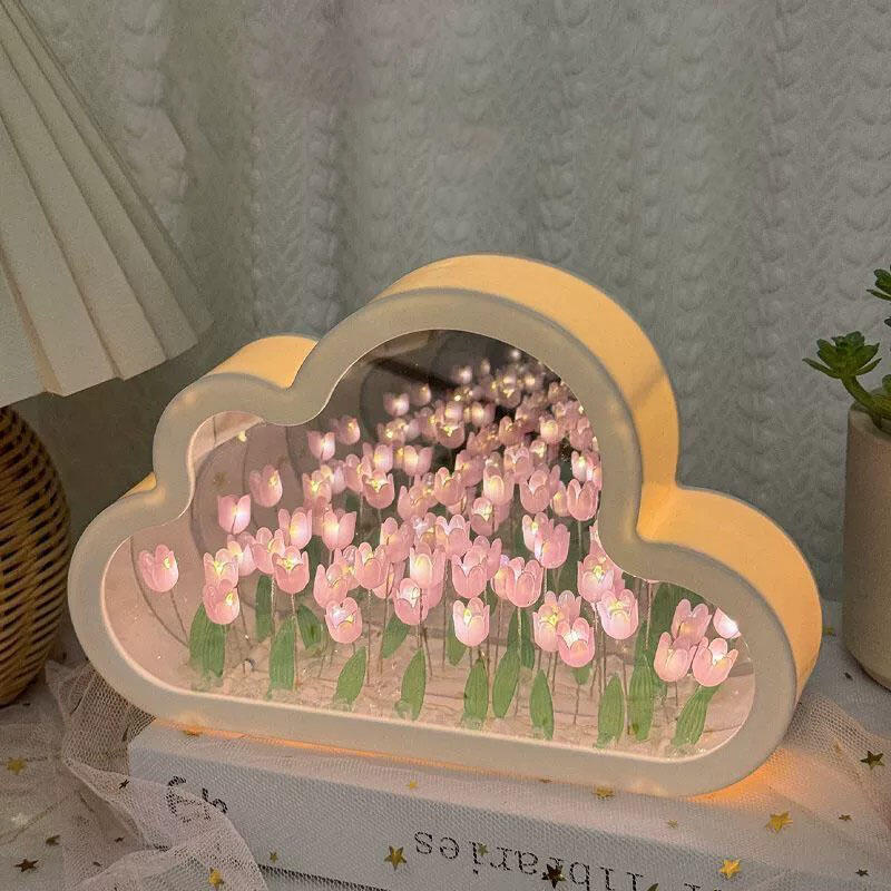 DIY Beautiful Cloud Tulip Mirror Lamp Romantic Valentine's Day Gift