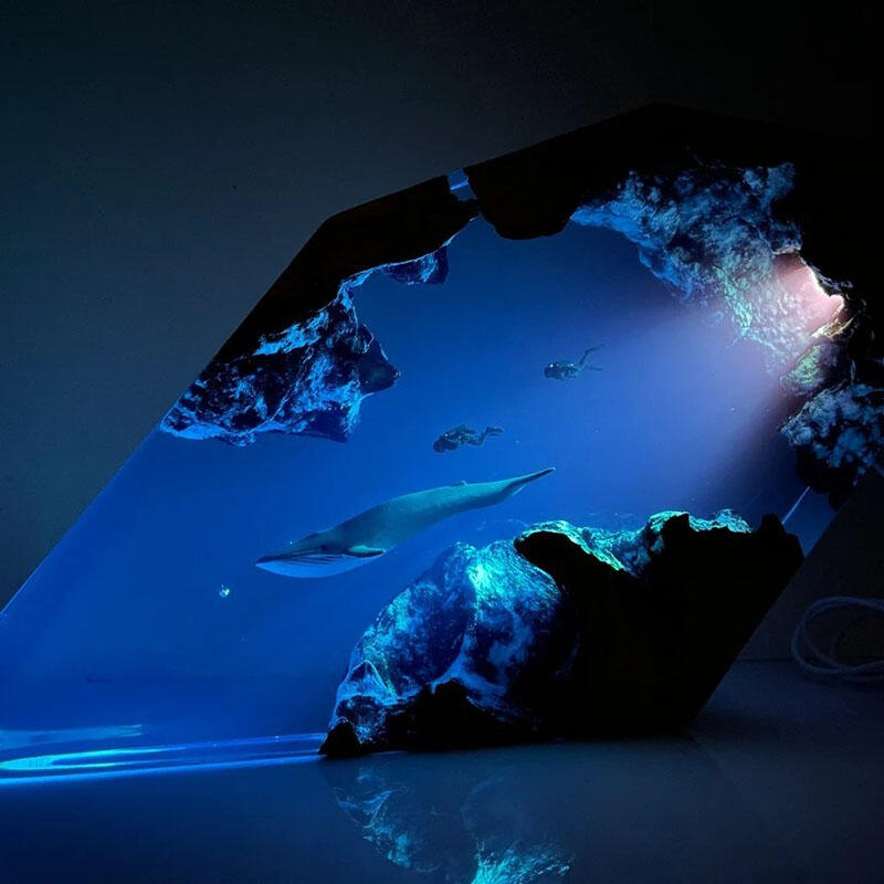 Blue Whale And Couple Diver Resin Night Light Precious Gift for Valentine's Day