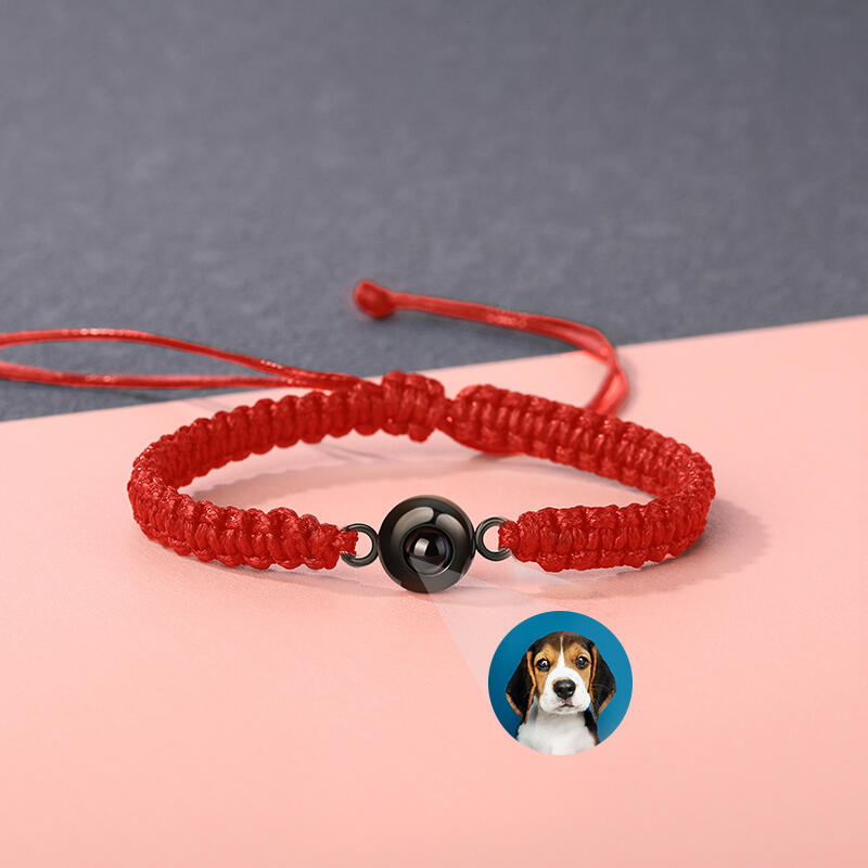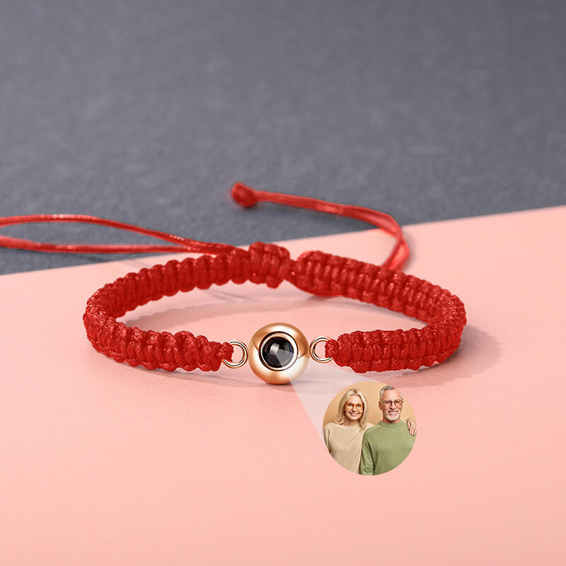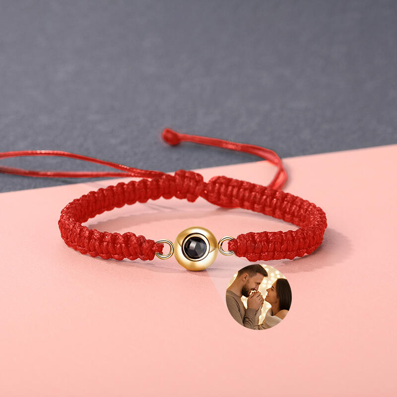 Christmas Gift Personalized Round Photo Projection Red Braided Bracelet
