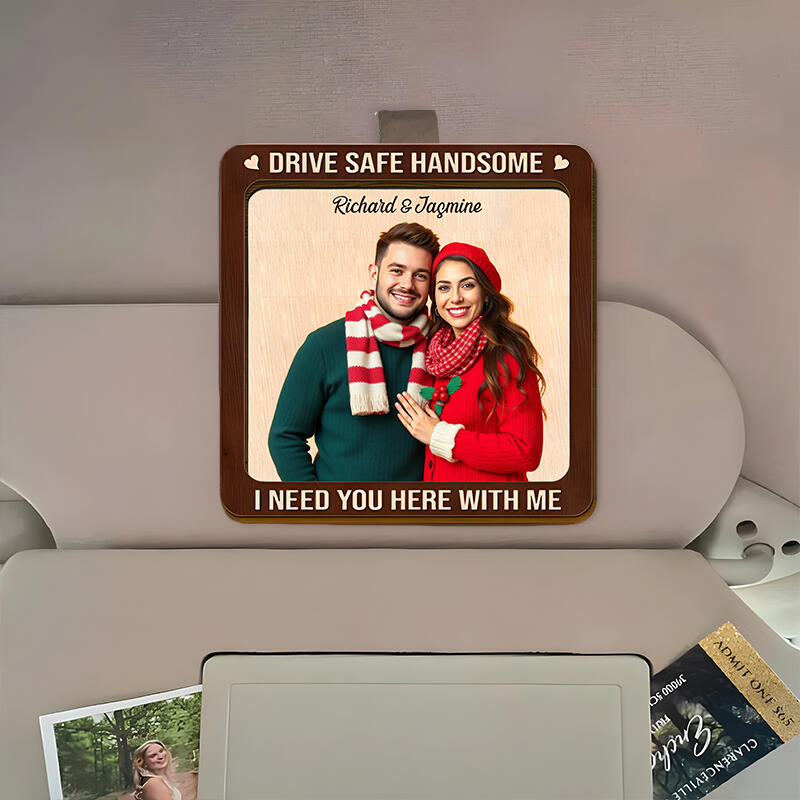 Custom Car Visor Clip Wooden Photo Frame New Car Celebration Gift for Husband