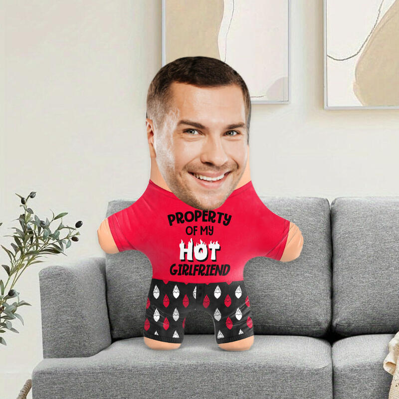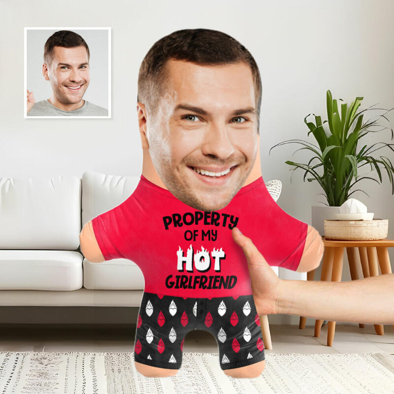 Custom Face Pillow Property of My Hot Girlfriend Funny Doll Portrait Pillow for Her