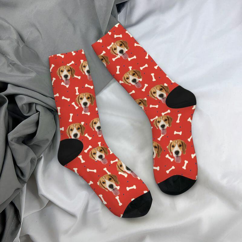 These socks are designed with a variety of pet-related elements, from paw prints to playful illustrations, creating a whimsical and charming look. Each pair of socks can be customized with a photo of your beloved pet, making them a truly personalized and heartwarming accessory.These products are designed to celebrate the love and joy our furry friends bring to our lives.