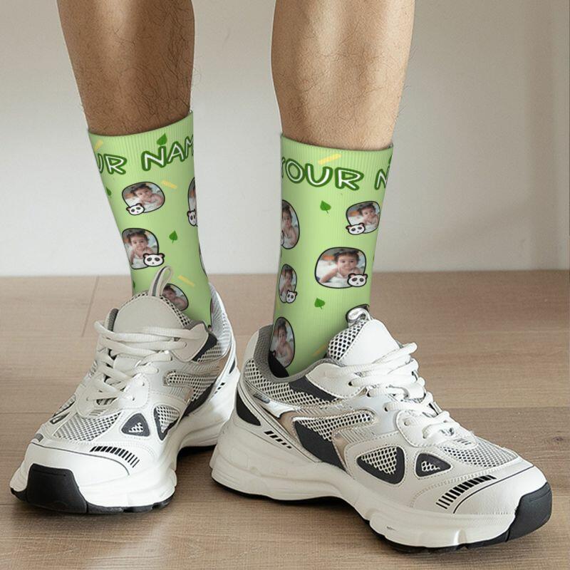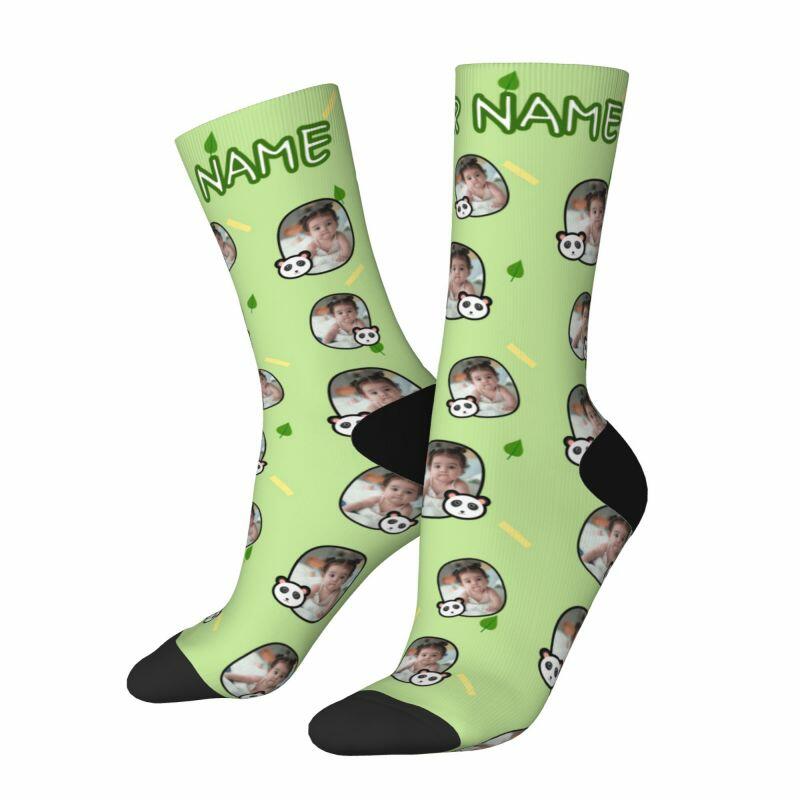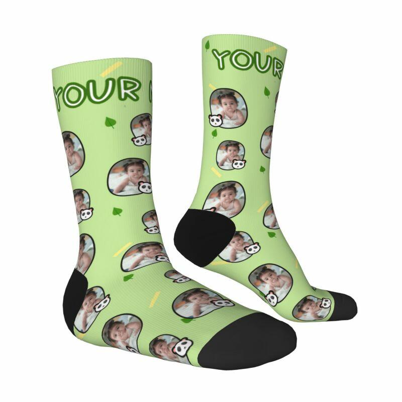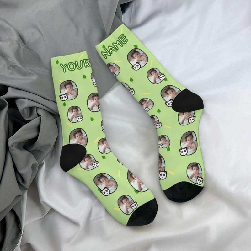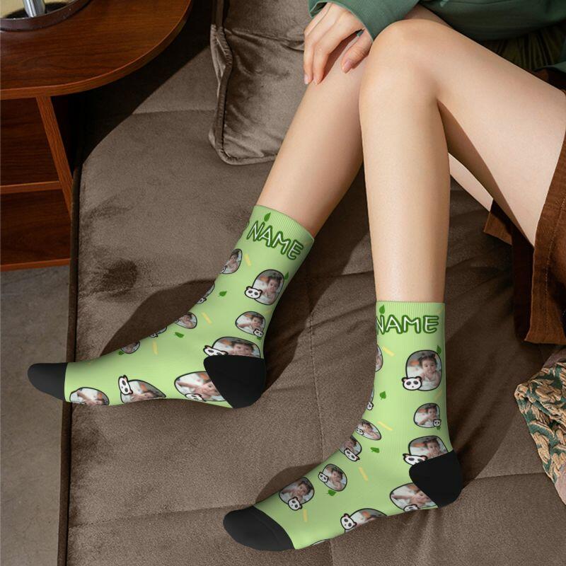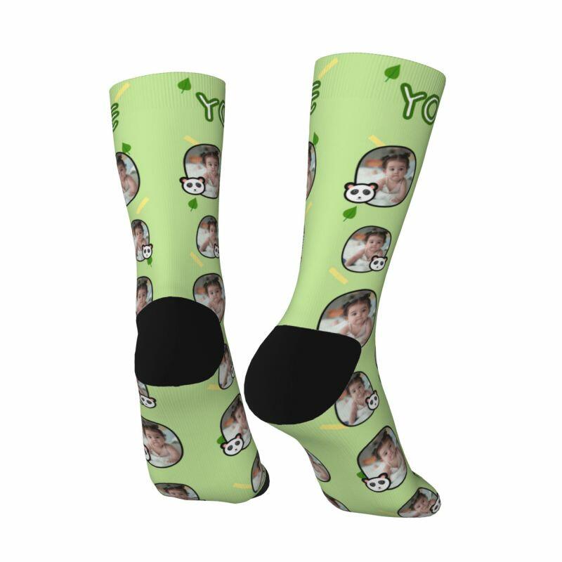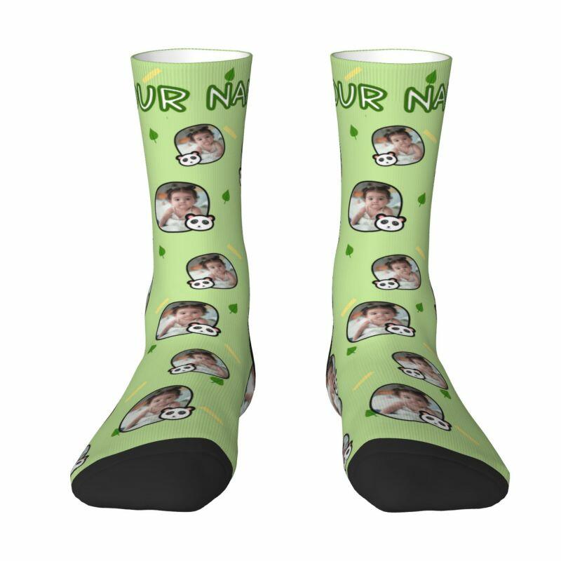 Custom Face Socks with Panda' Photo Frame Add Kid Pictures for Mom
