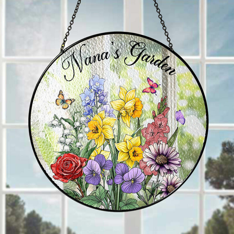 Custom Family Birth Flowers Windows Suncatcher Flower Glass Art Mother's Day Gift for Mom