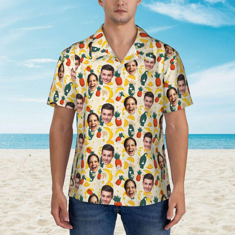 Introducing our Hawaiian shirts, the perfect blend of style and personalization for your wardrobe. Elevate your look by customizing these shirts with your loved one's face photos, making them a thoughtful and unique gift for husbands, dads, grandpas, friends, and family members.
