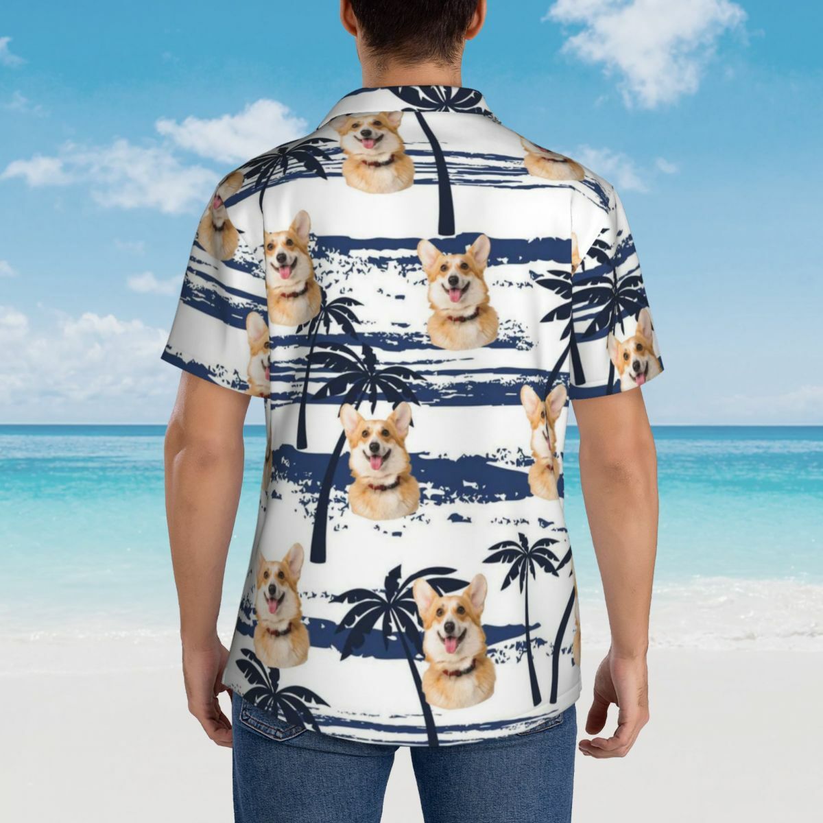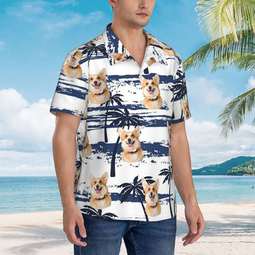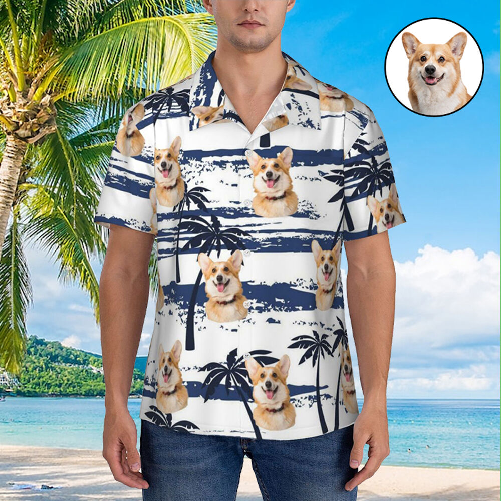 Custom Hawaiian Shirt with Coconut Tree Pattern Add Pet Photo Holiday Gift for Pet Lovers