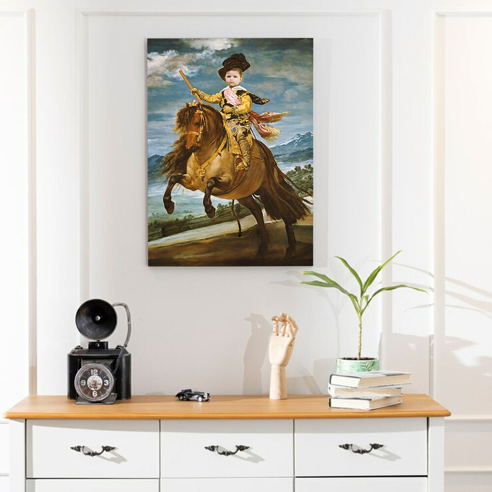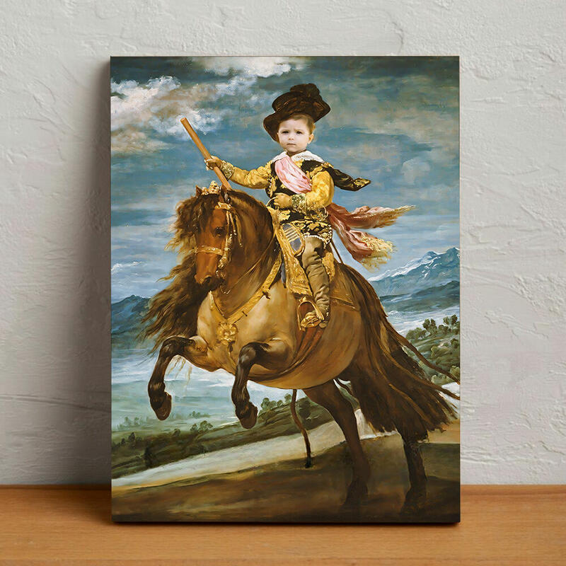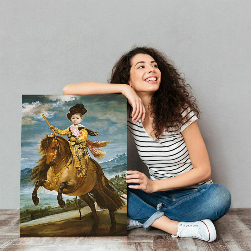 Custom Kid Head Photo Renaissance Portrait Little Horseman Gift for Kid