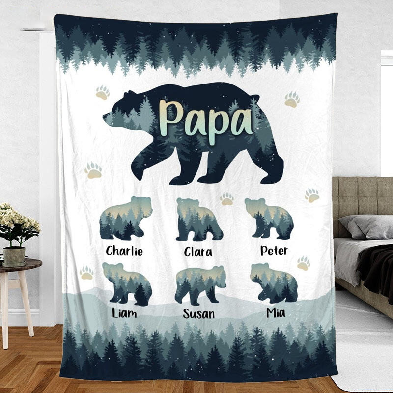 Custom Name Cute Bear Pattern Blanket Best Gift for Father's Day