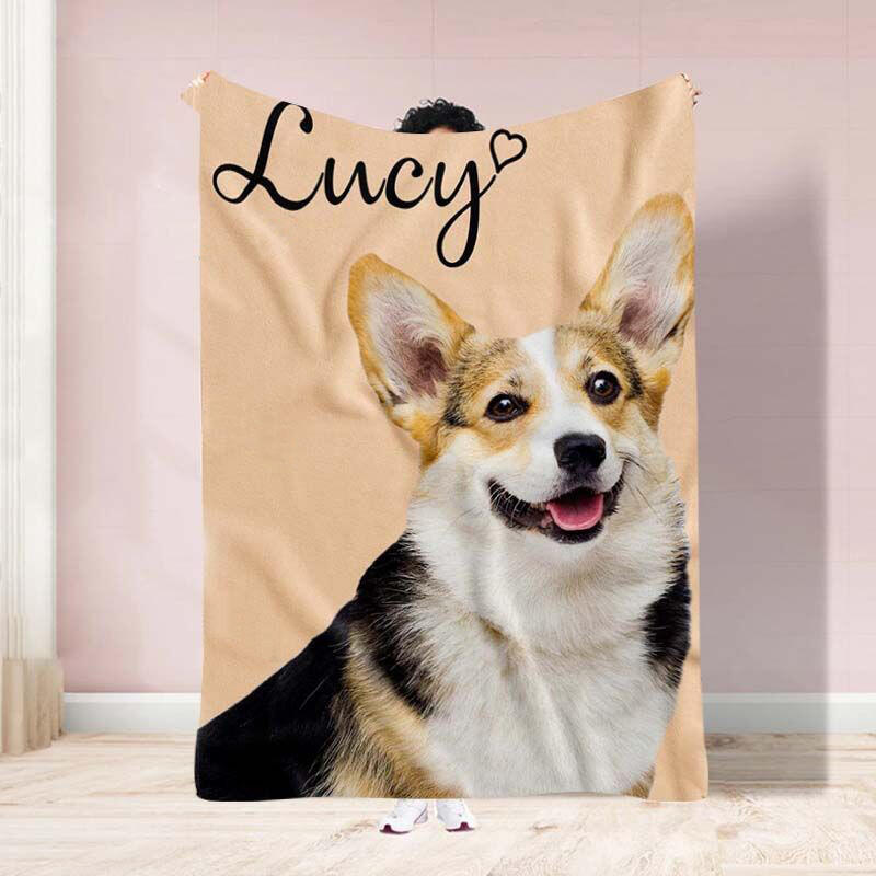 Custom Pet Blanket With Pet Photo and Colored Background