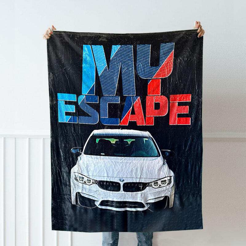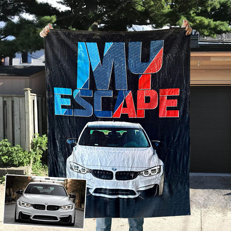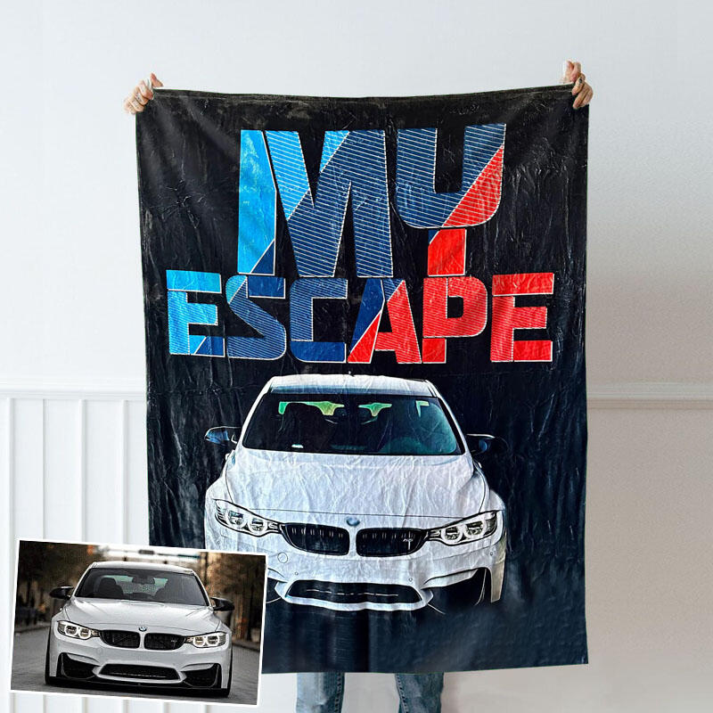Custom Picture Car Blanket with Contrast Color Font Cool Gift for Him "My Escape"