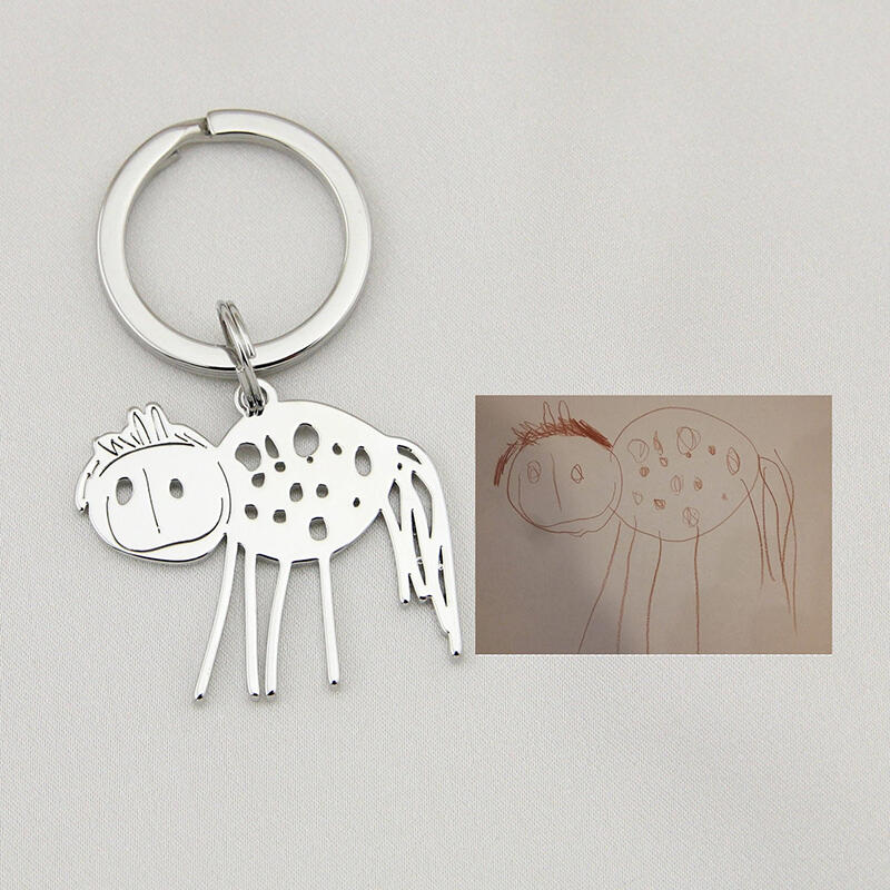 Custom Picture Keychain Personalized Handwriting Photo Artwork Gift for Father