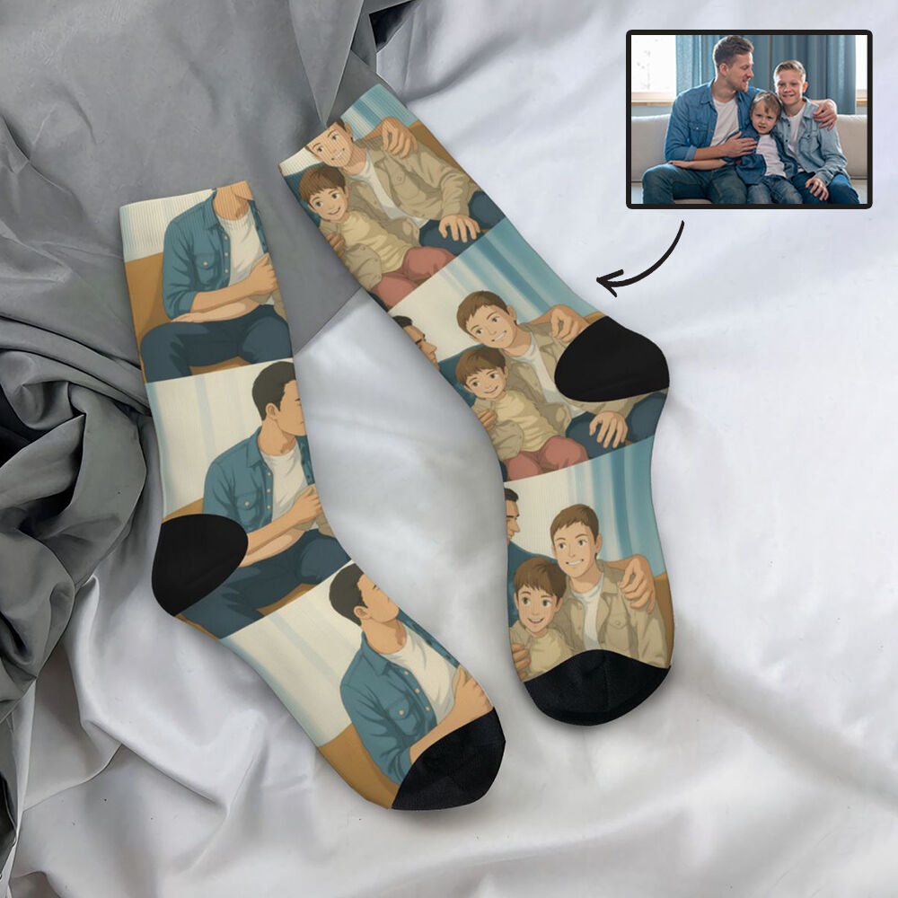 Custom Retro Photo Socks for Father and Son Photo Father's Day Gift for Dad