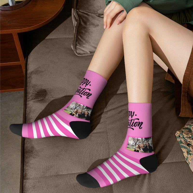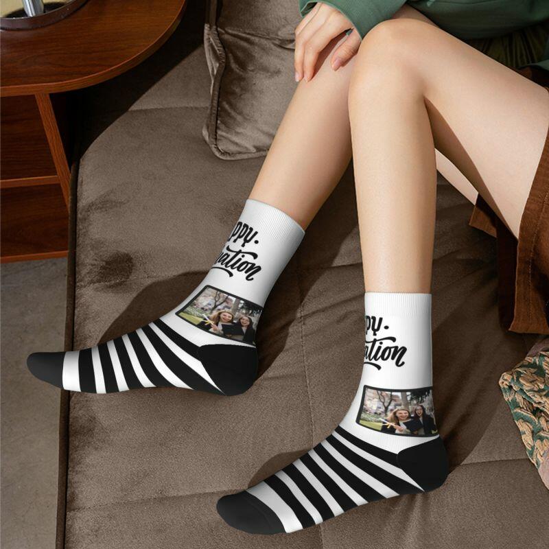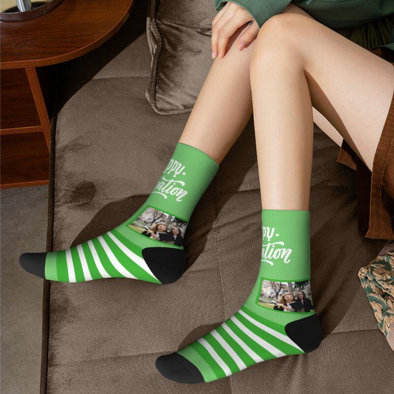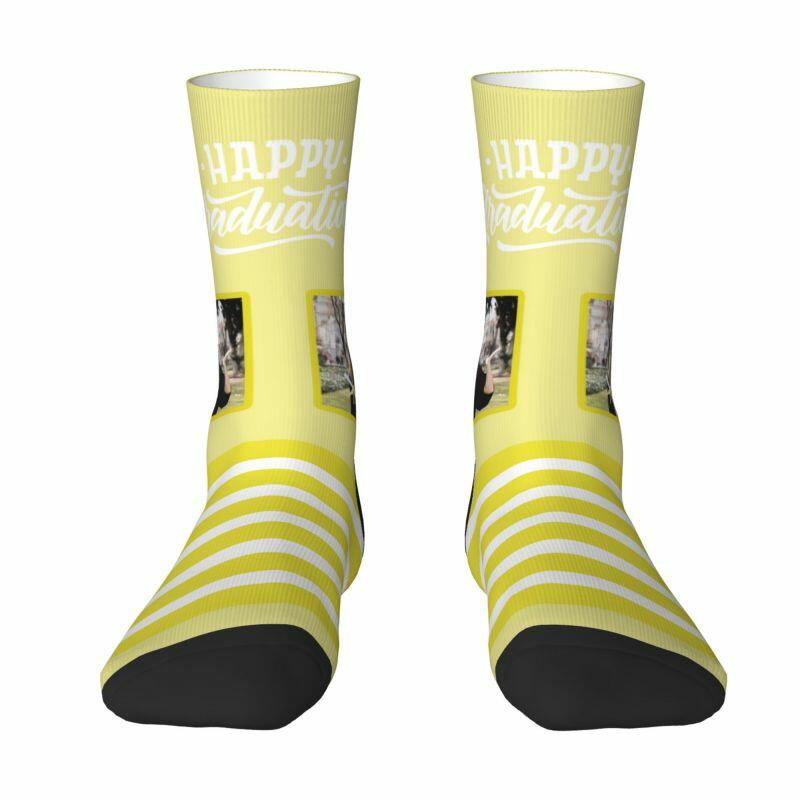 Custom Striped Face Socks 6 Colors Add Photo As Graduation Gift