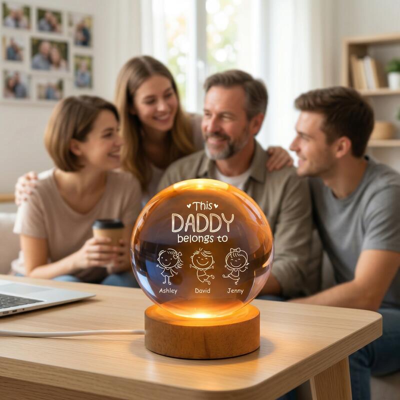 Customized Crystal Ball Lamp with Child's Name Added a Heartwarming Father's Day Gift for Dad