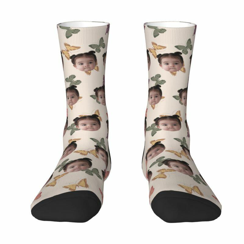 Customized Face Socks 3D Printed with Photos of Kids Gift for Mom