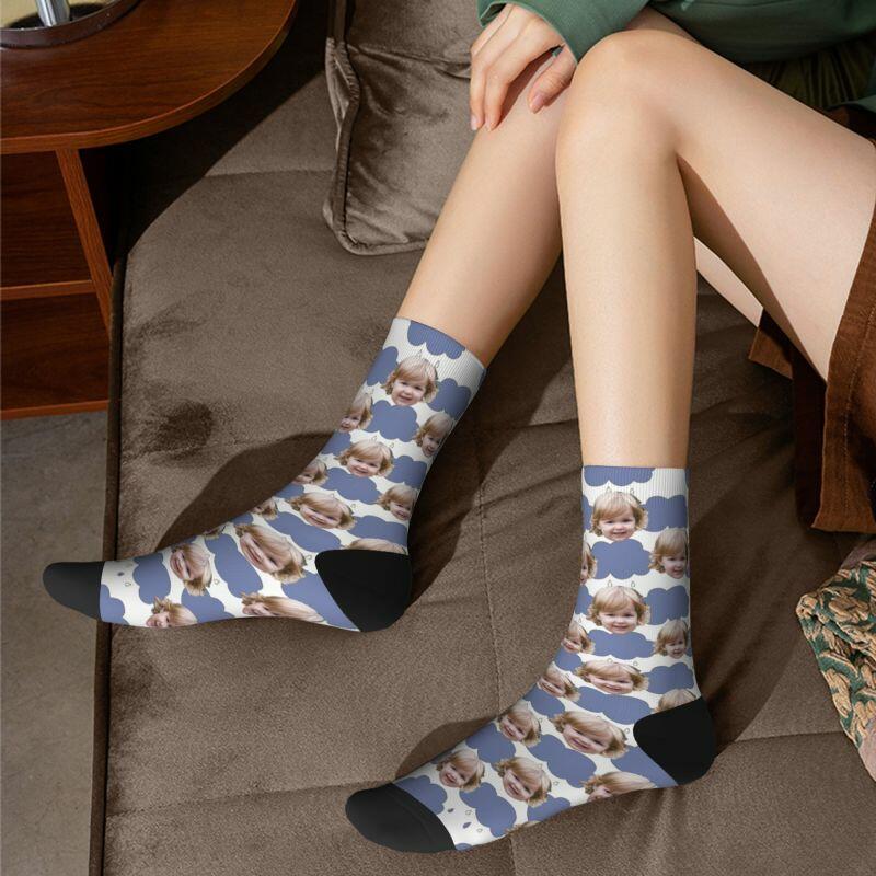 Customized Face Socks 3D Printed with Photos of Kids Gift for Mom