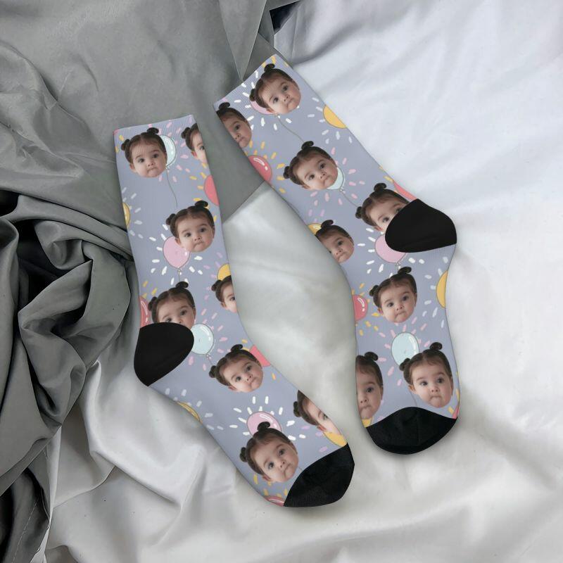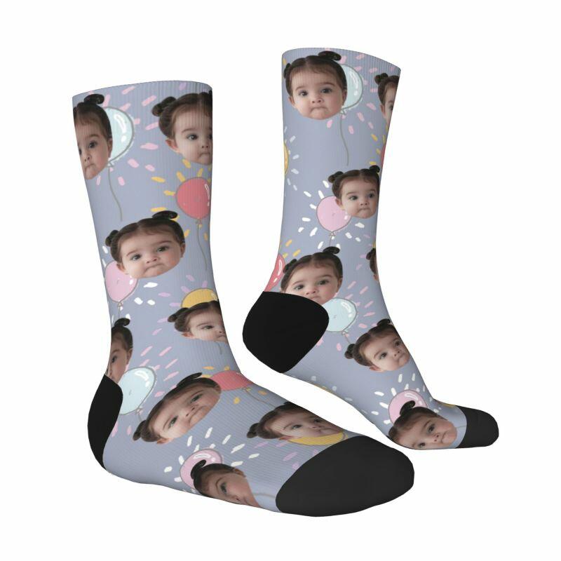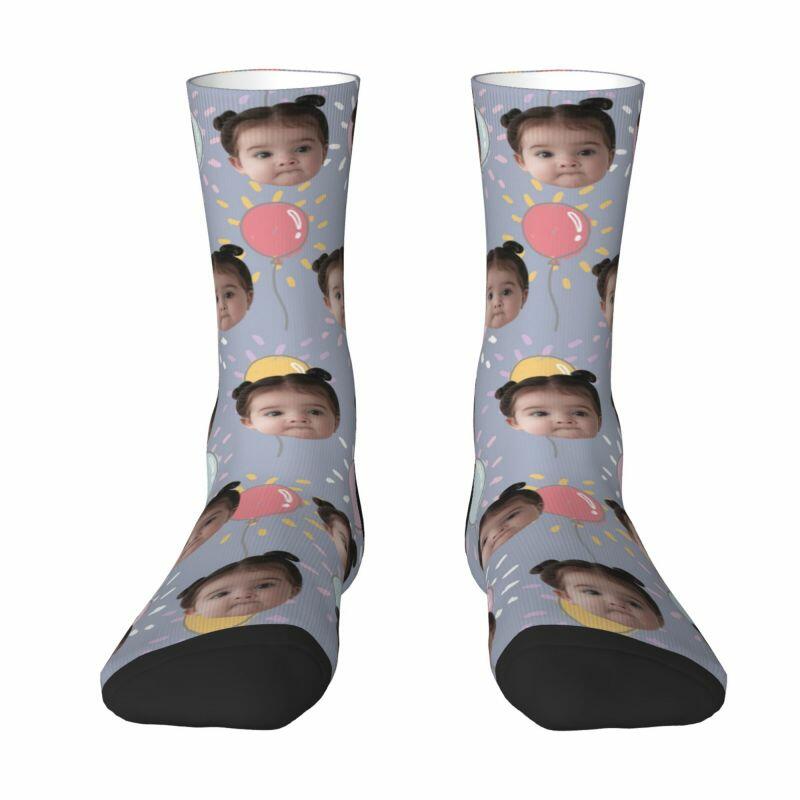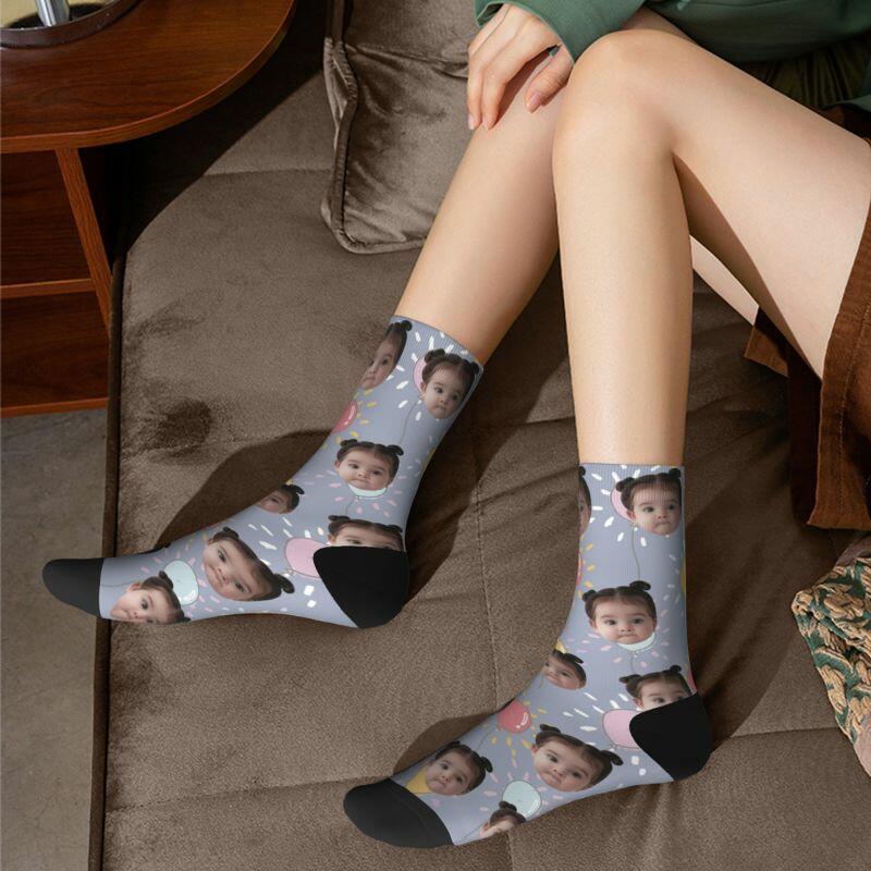 Customized Face Socks 3D Printed with Photos of Kids Gift for Mom