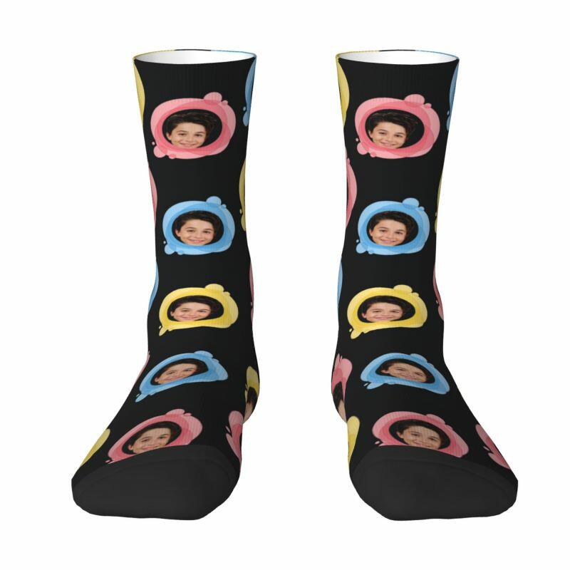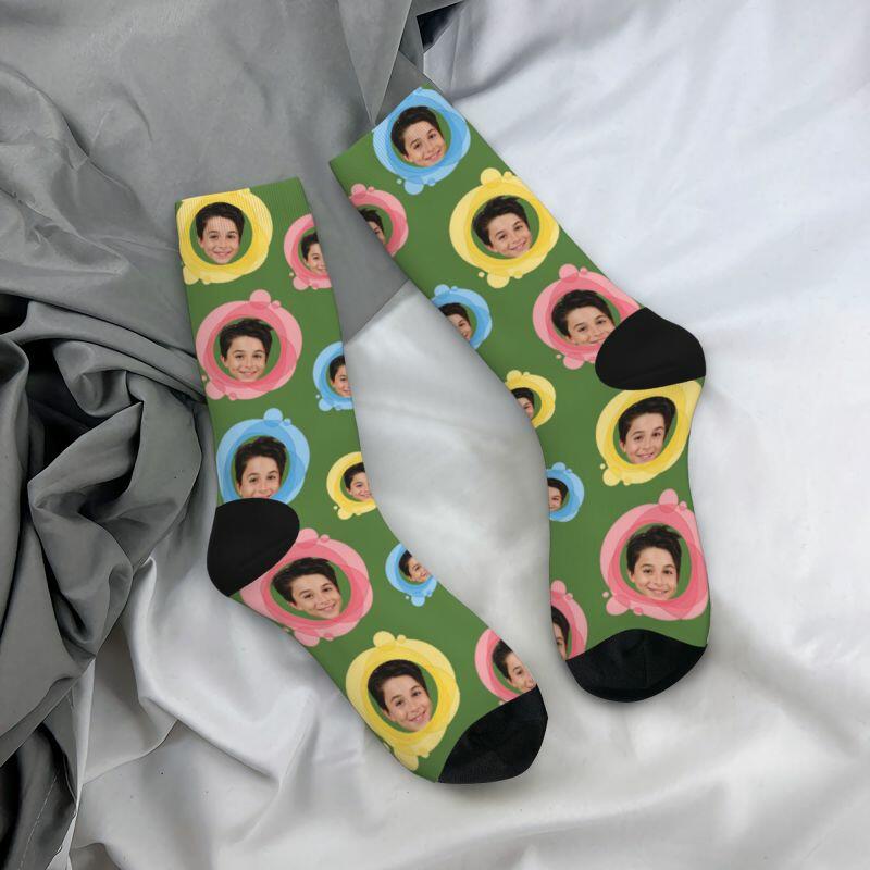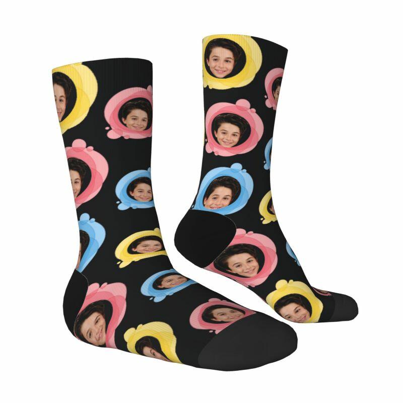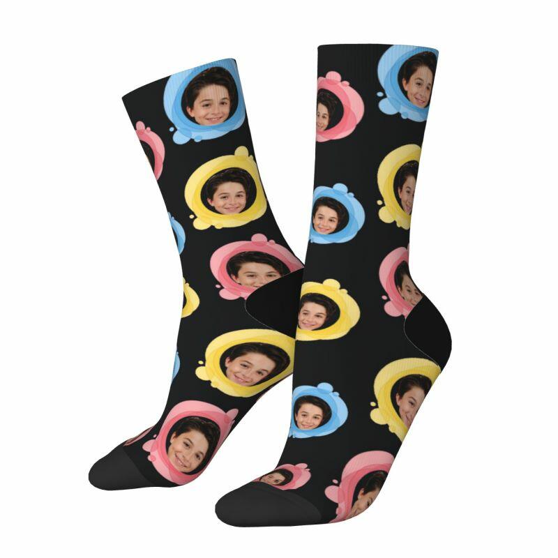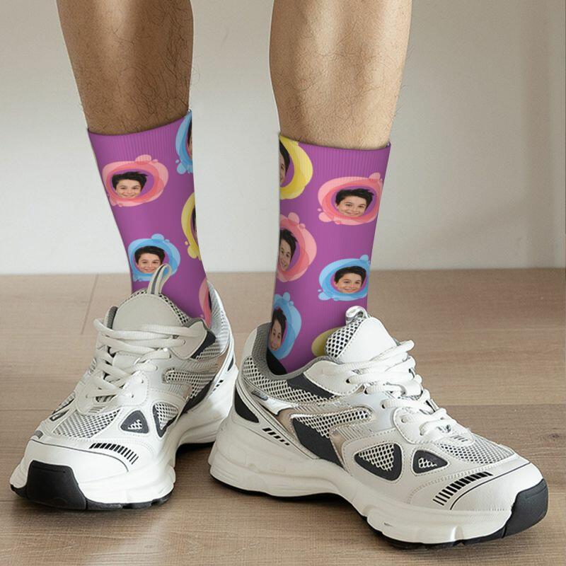 Customized Face Socks Add Photos in Colorful Circle Gifts for Dad
