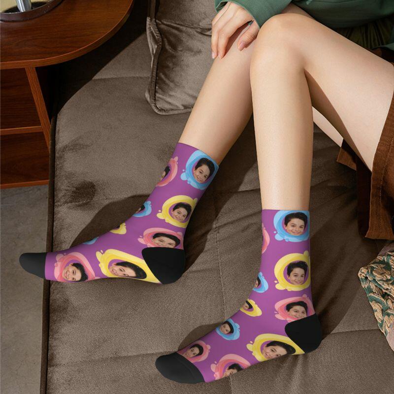 Create lasting memories and cherish the joy of parenthood with our customizable kids' photo socks. Made with high-quality materials, these socks offer comfort, creativity, and a sense of closeness.If you're looking for a thoughtful gift, these socks are a perfect choice to celebrate the love and bond you share with your child.
