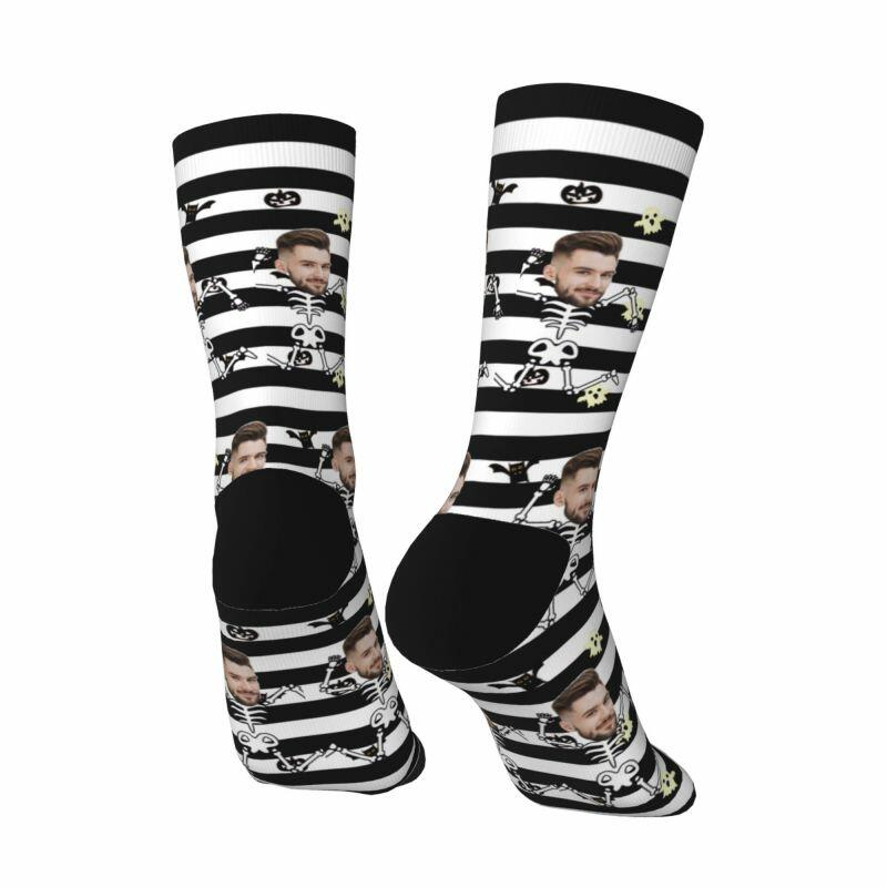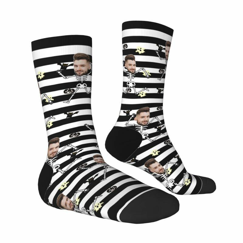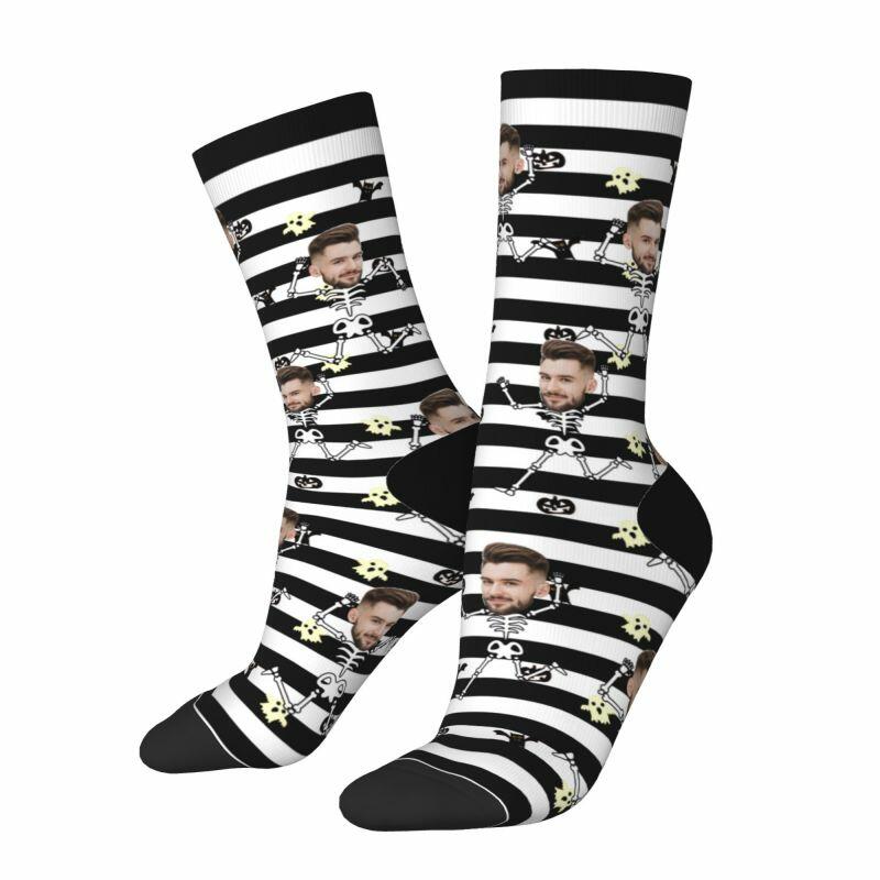 Customized Face Socks Black and White Striped Socks Spoof Skull Halloween Gift for Friends