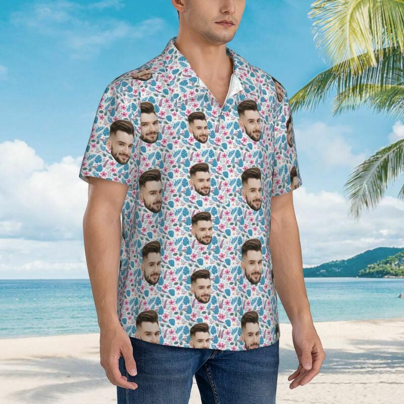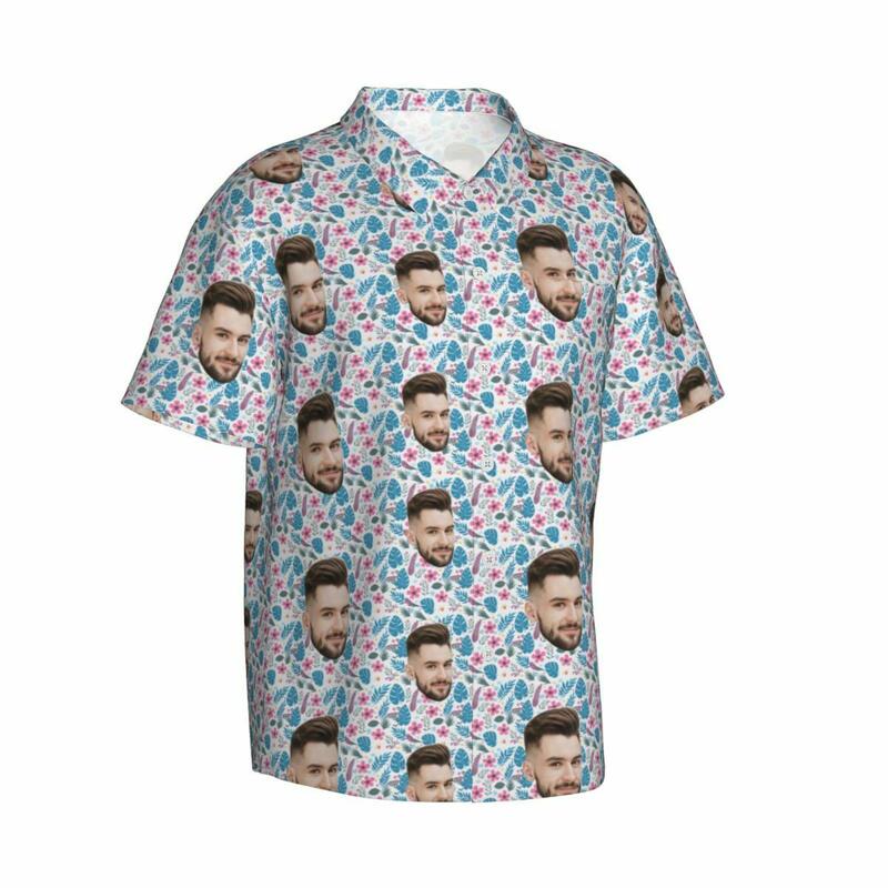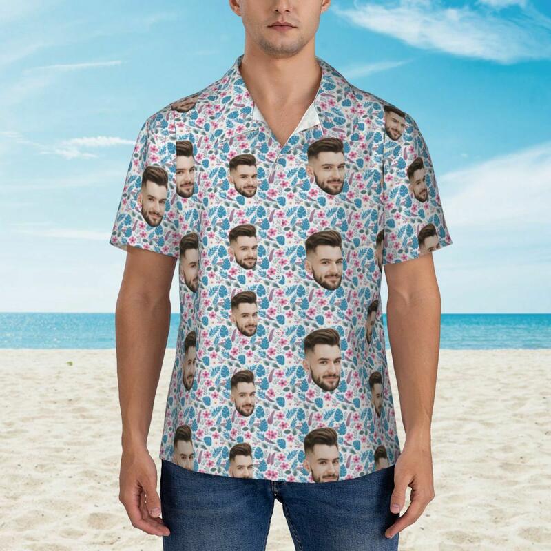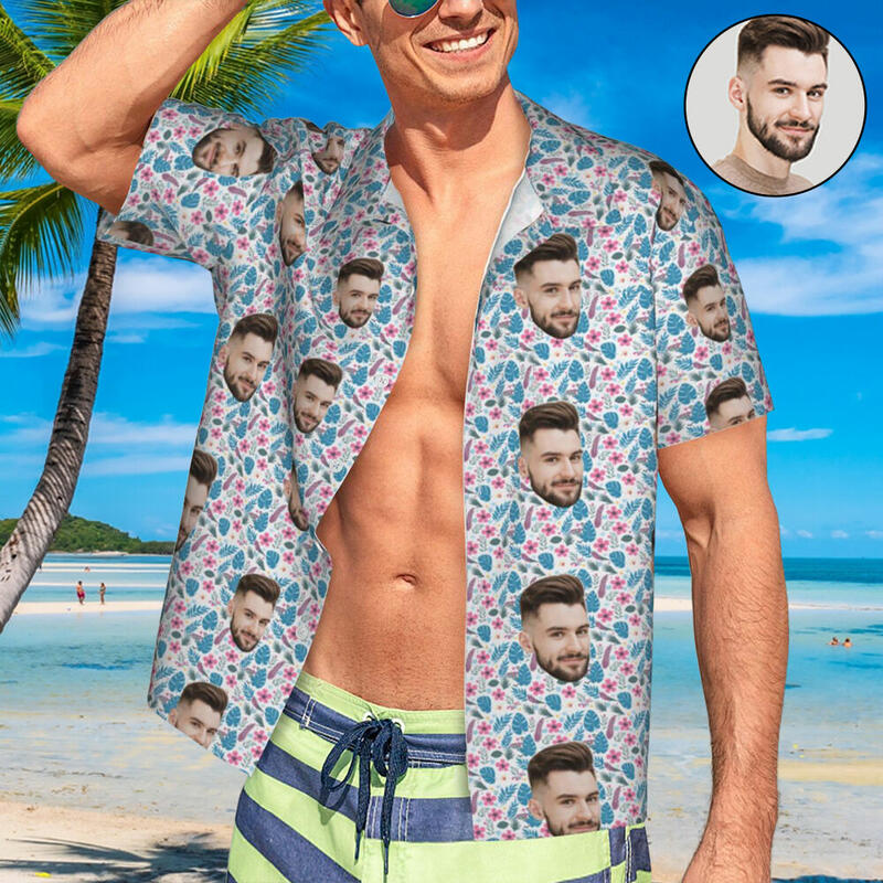 Customized Hawaiian Shirt with Small Floral Prints to Add Face Photos