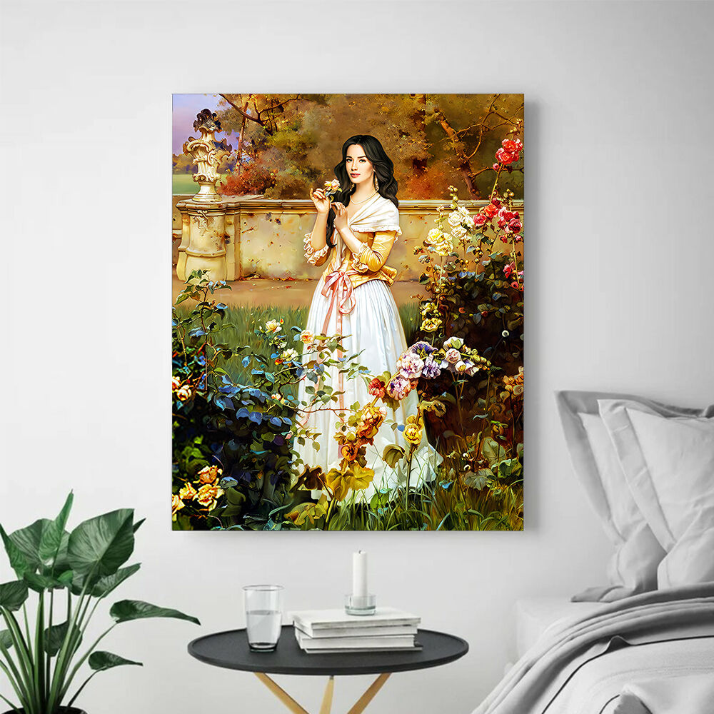 Customized Head Photo Royal Frame Portrait for Her the Lady in the Rose Garden