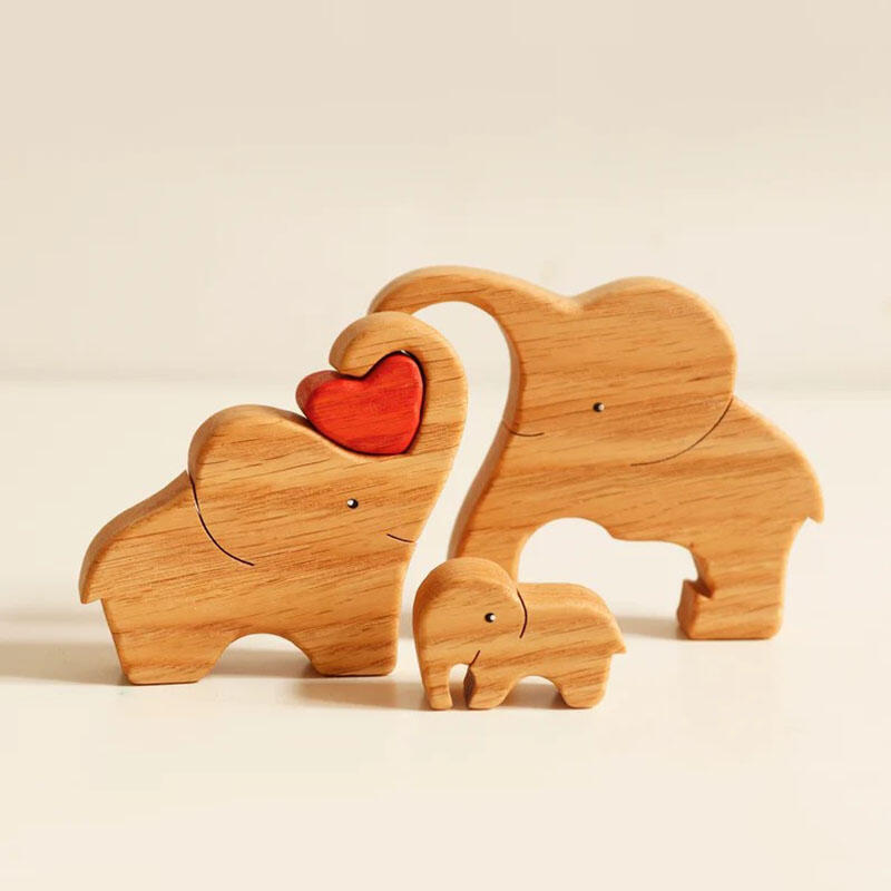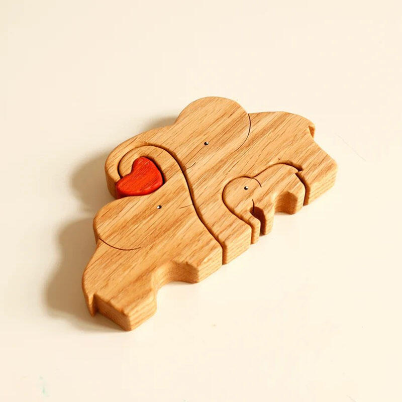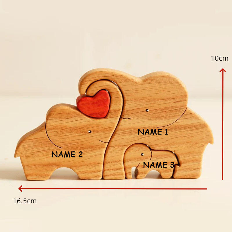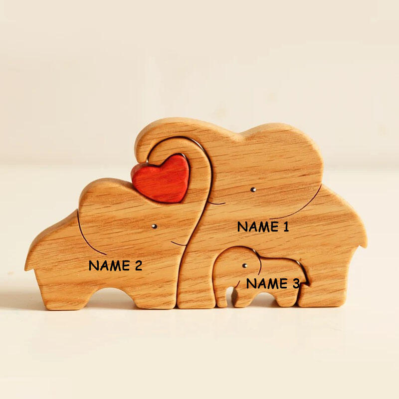 Customized Names Elephant Wooden Family Puzzle Christmas Gift With Heart