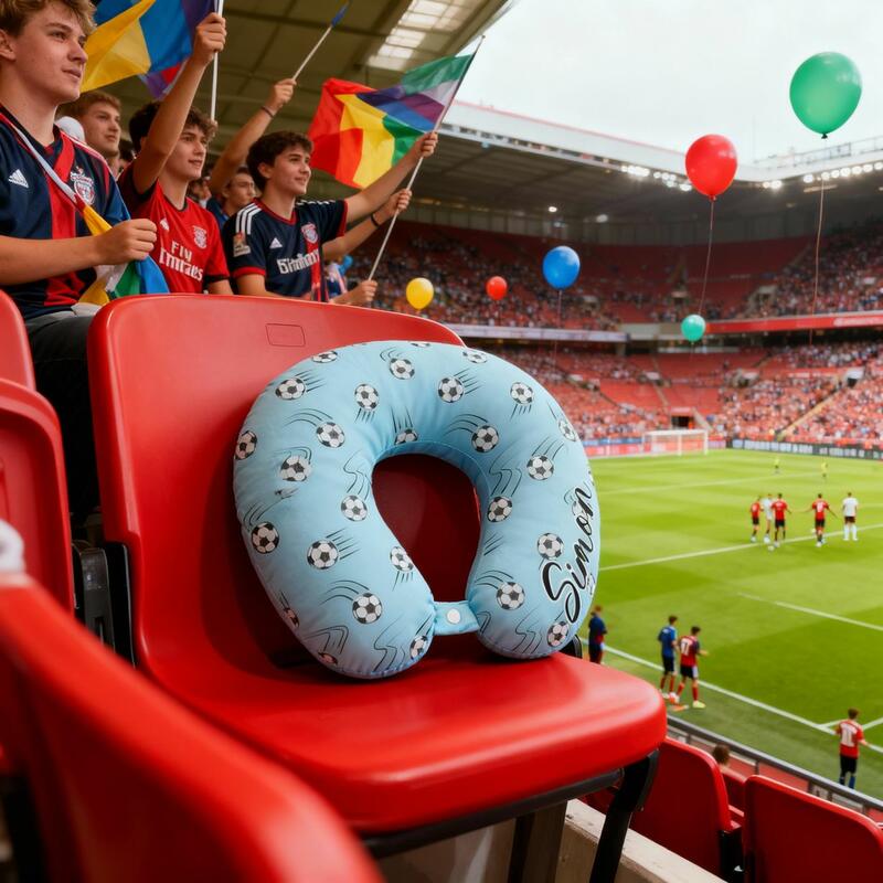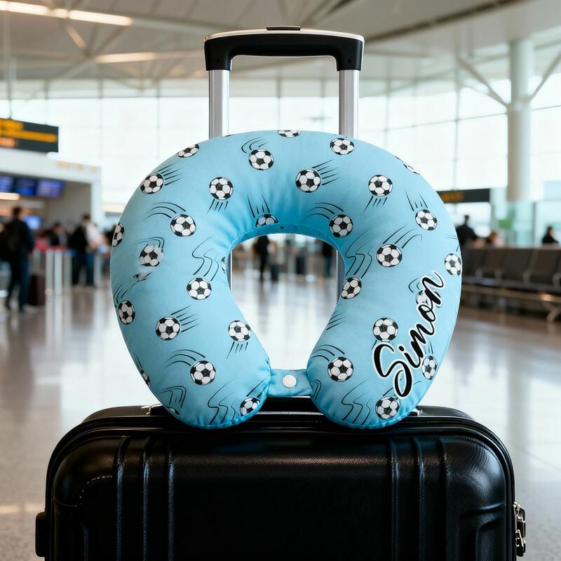 Customized Name U-Shaped Pillow with Football Blue Printed Portable Travel Pillow for Kids