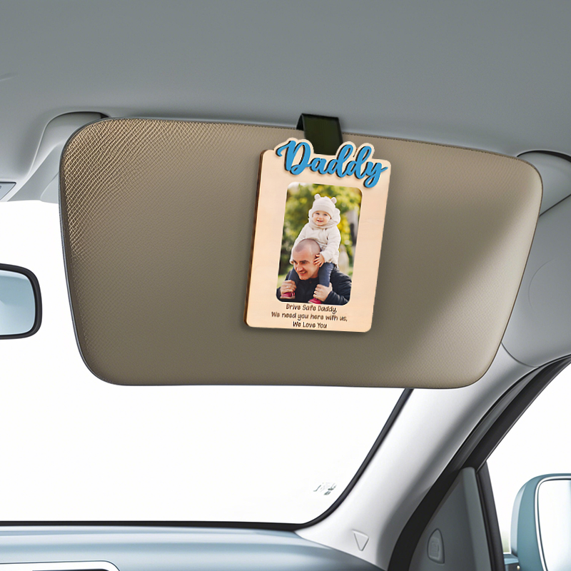 Customized Photo Car Visor Clip Mini Photo Frame Driving Companion Gift for Dad